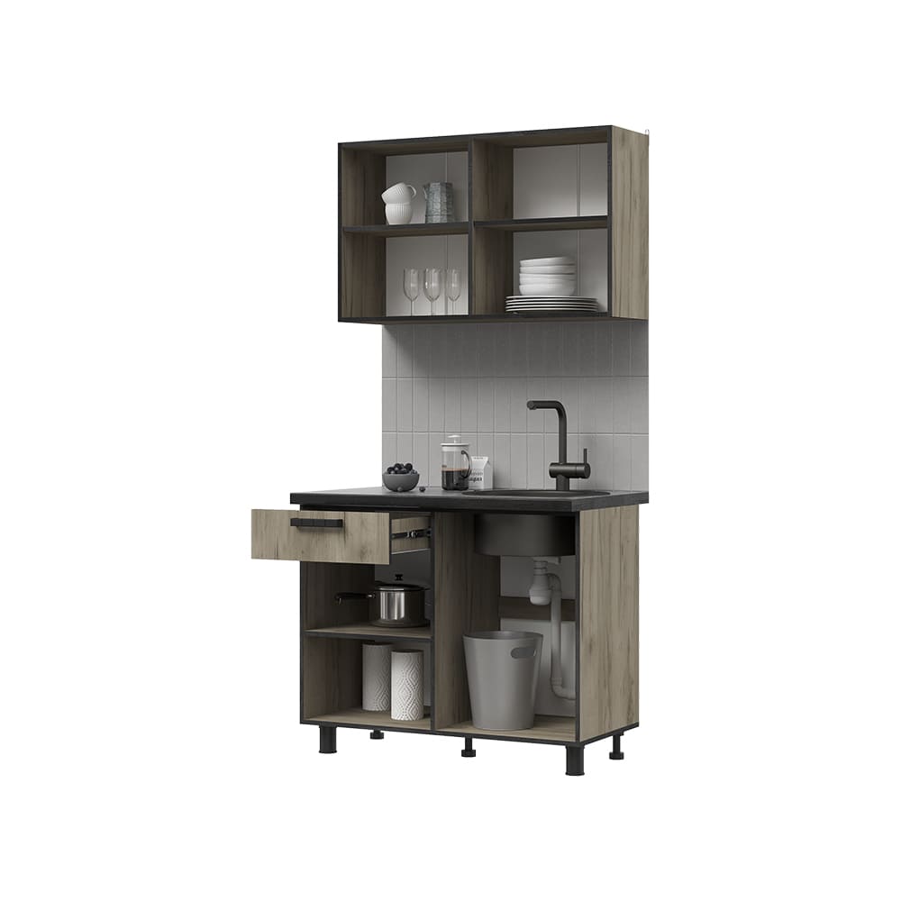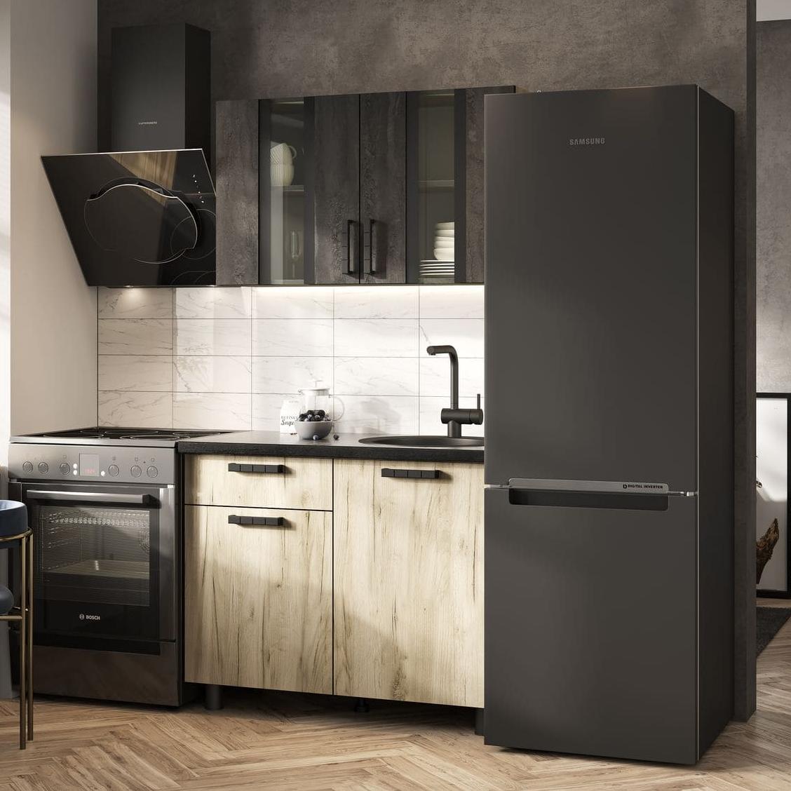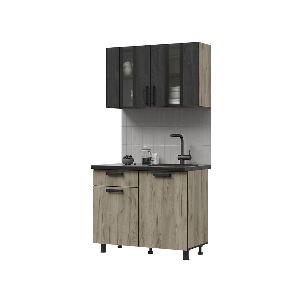 Кухня ЭДИНБУРГ 1000 // крафт серый, железный камень/крафт серый, сатинат, чёрный