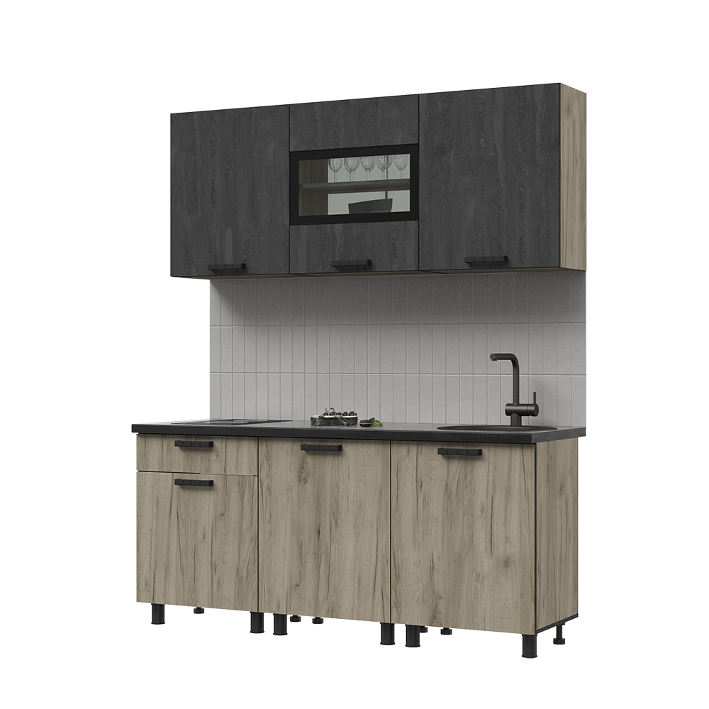 | Комплектация | В600,В600,В600, Низ 600,Н600,Н600М столешница 1800 мм 38 мм черный матовый |