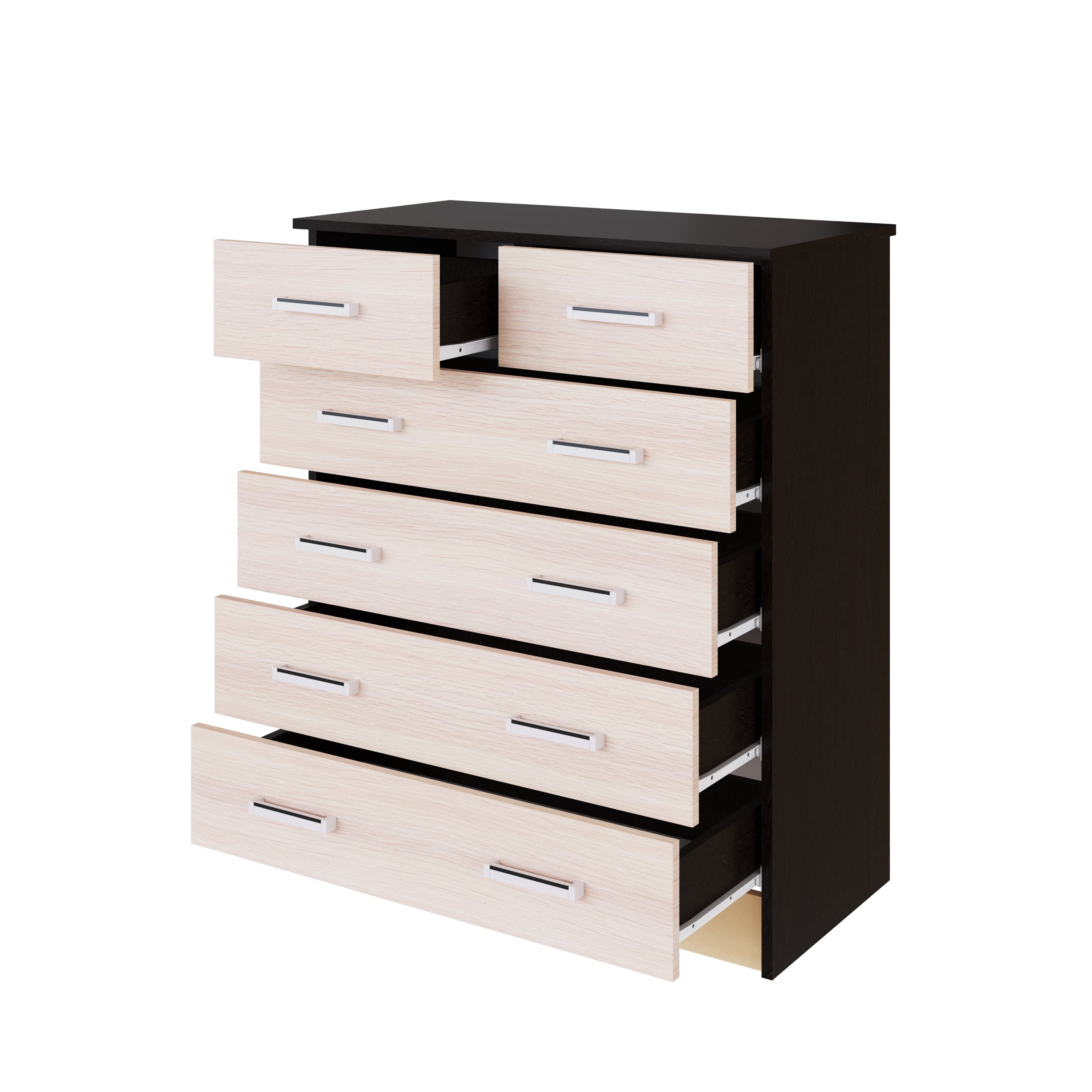 - Выдвижные ящики установлены на роликовых направляющих