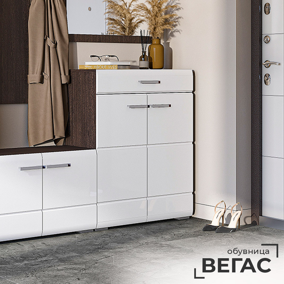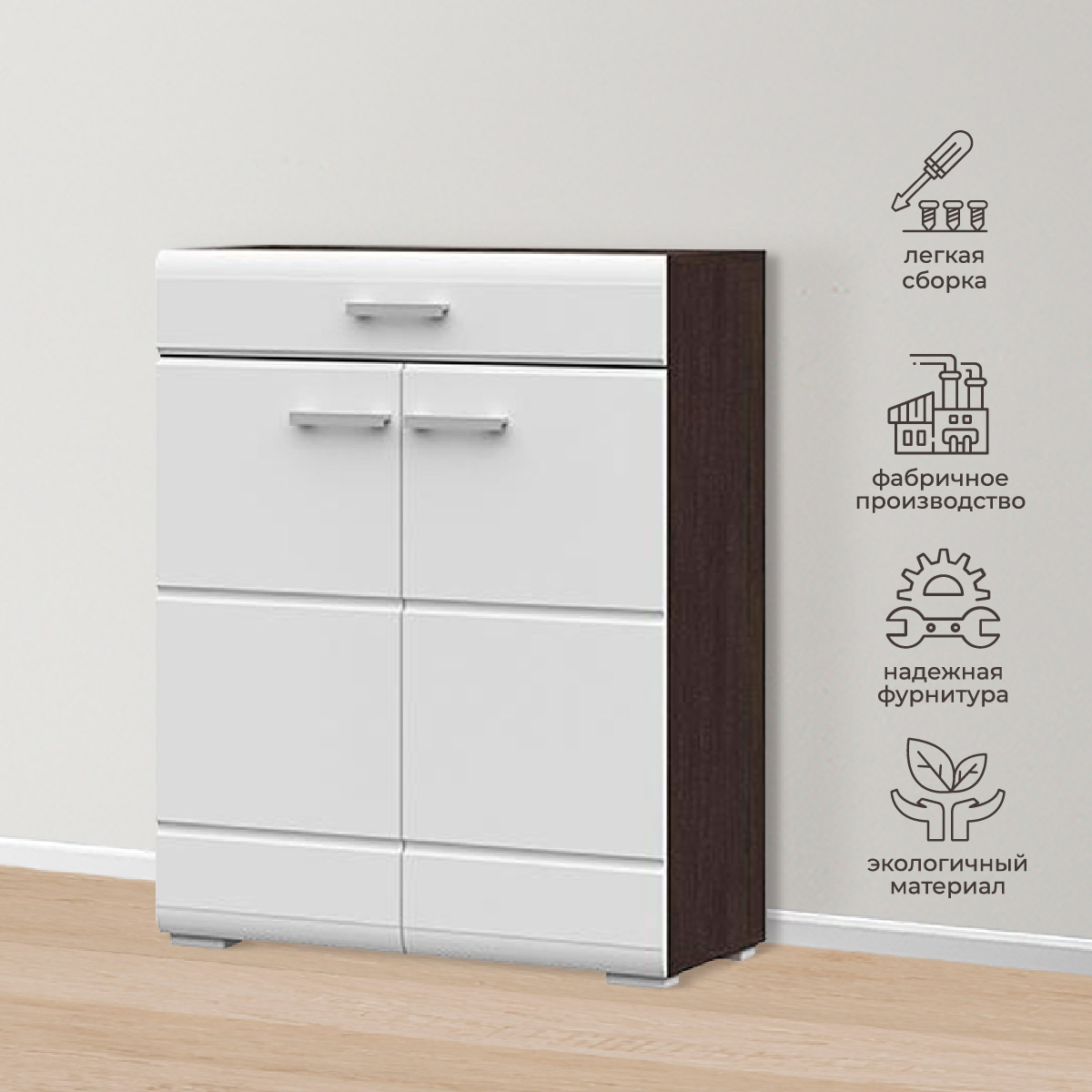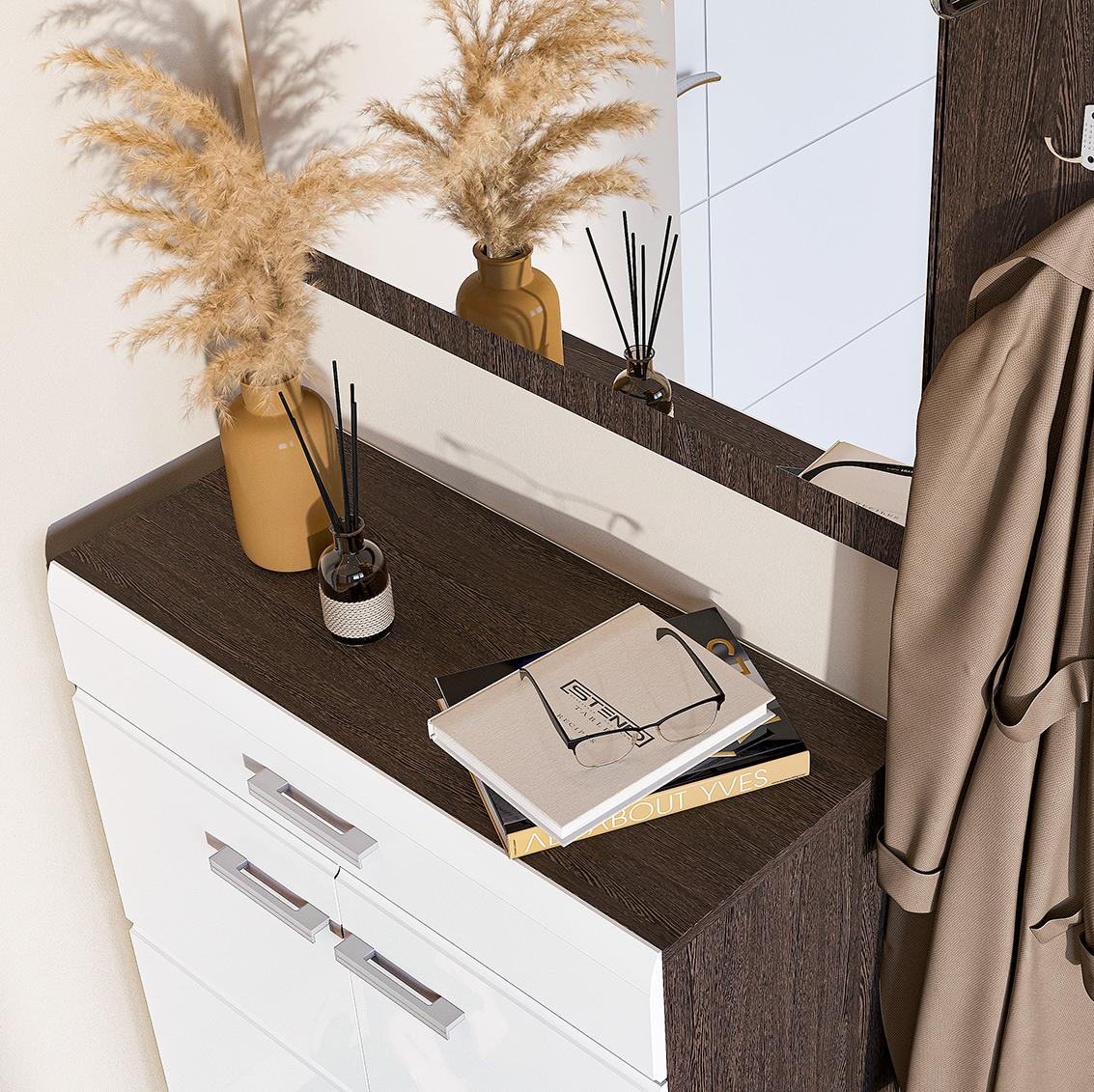 Обувница с ящиком ВЕГАС // Венге,Белый глянец