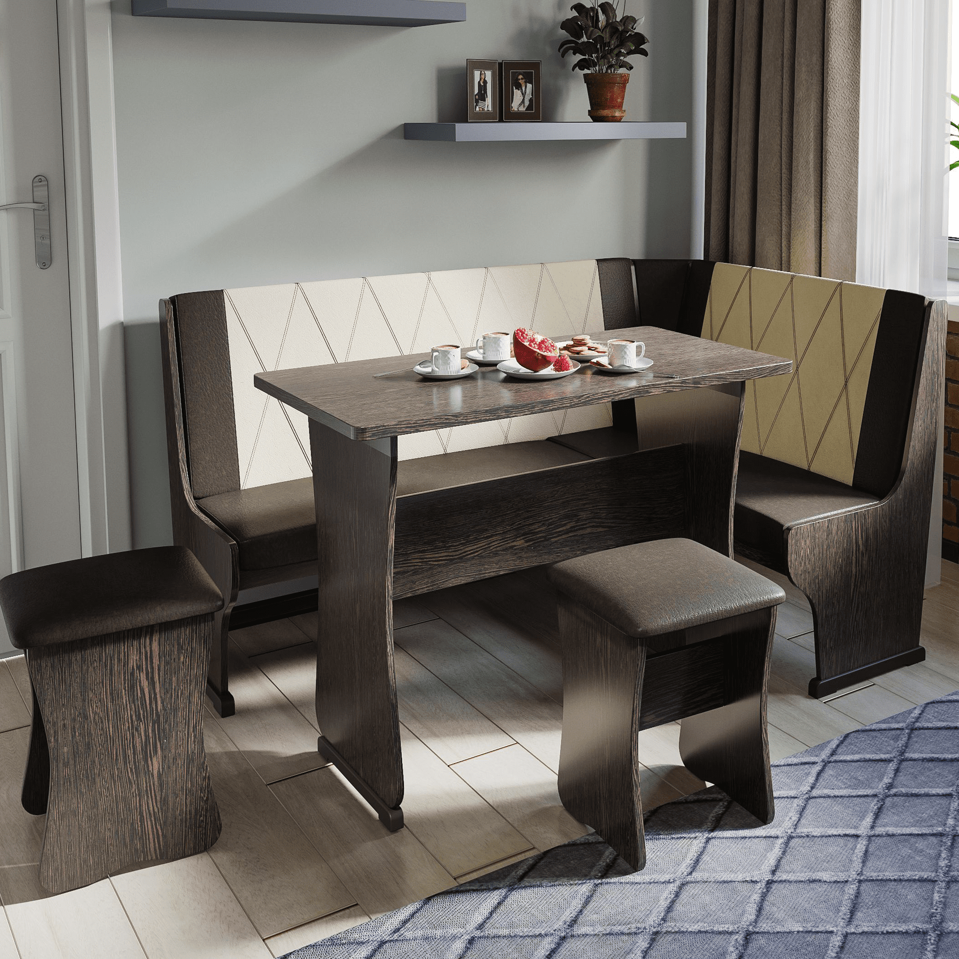 Кухонный уголок ГАММА (тип 2) // венге, искусственная кожа шоколад-бежевый, Универ.