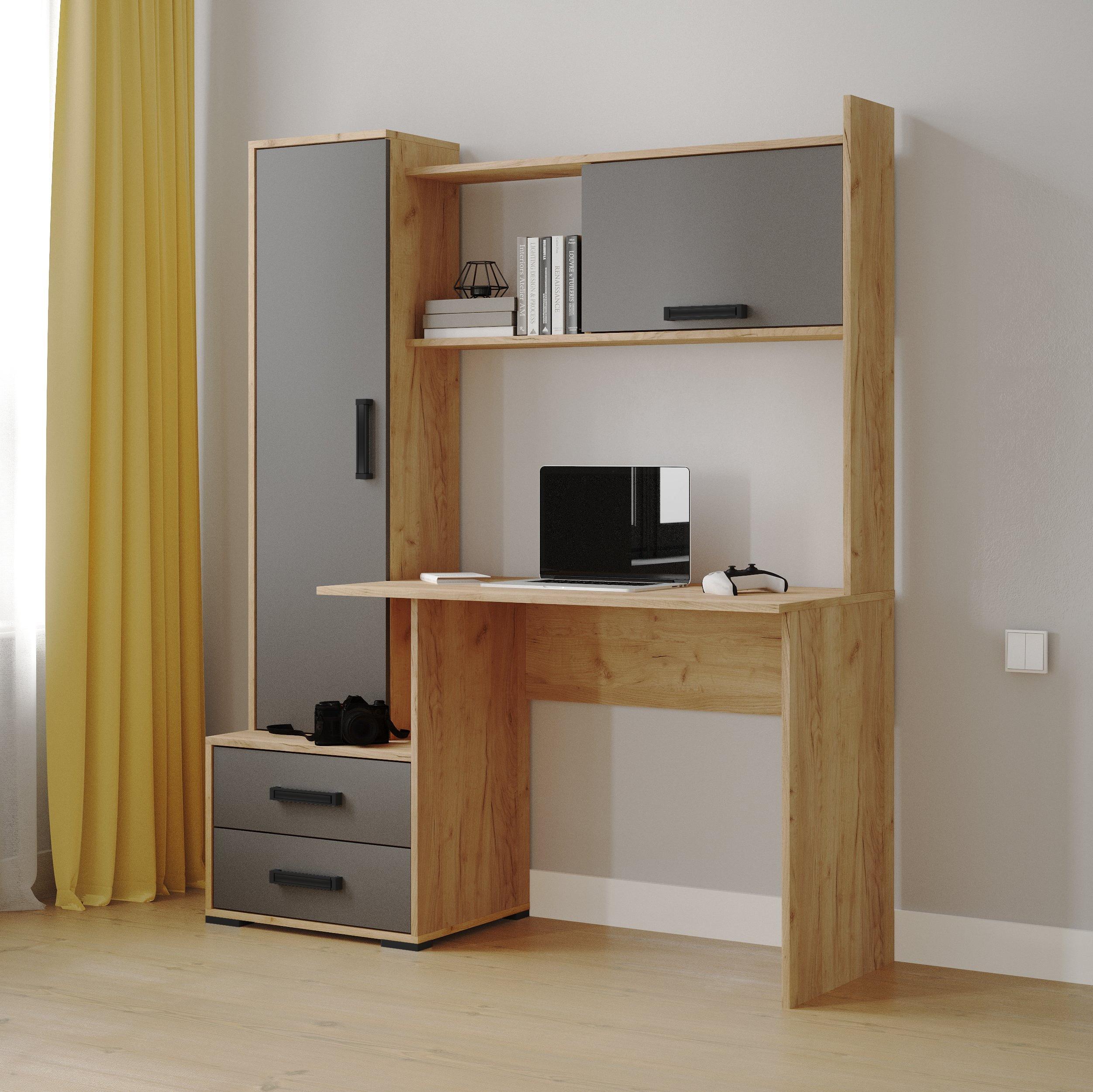 Стол компьютерный КВАРТЕТ-9 // дуб крафт золотой,графит серый