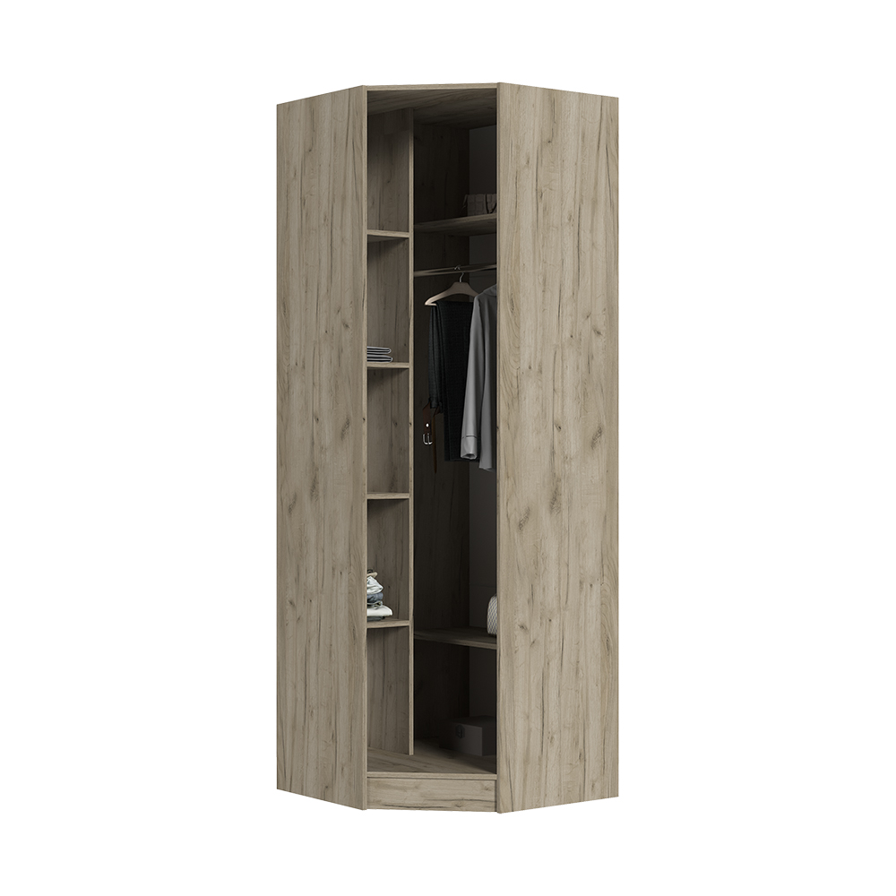 Вместительный угловой шкаф ГАРМОНИЯ ШУ-601М — это эргономичное решение, созданное для максимально эффективного использования пространства. Модель выполнена в классическом контрастном сочетании Дуб крафт серый и Дуб крафт белый, которое придает интерьеру глубину и уют. Продуманная внутренняя организация включает шесть глубоких полок для трикотажа и коробок, а также стационарную штангу, позволяющую аккуратно разместить верхнюю одежду и платья. Изготовленный из высококачественного износостойкого ЛДСП, шкаф устойчив к влаге и механическим повреждениям, что гарантирует сохранение эстетичного вида фасадов на долгие годы. Если вы хотите купить угловой шкаф для одежды, который сэкономит полезную площадь и при этом обеспечит порядок в вещах, модель ШУ-601М из коллекции ГАРМОНИЯ станет незаменимым элементом вашей спальни или прихожей.
