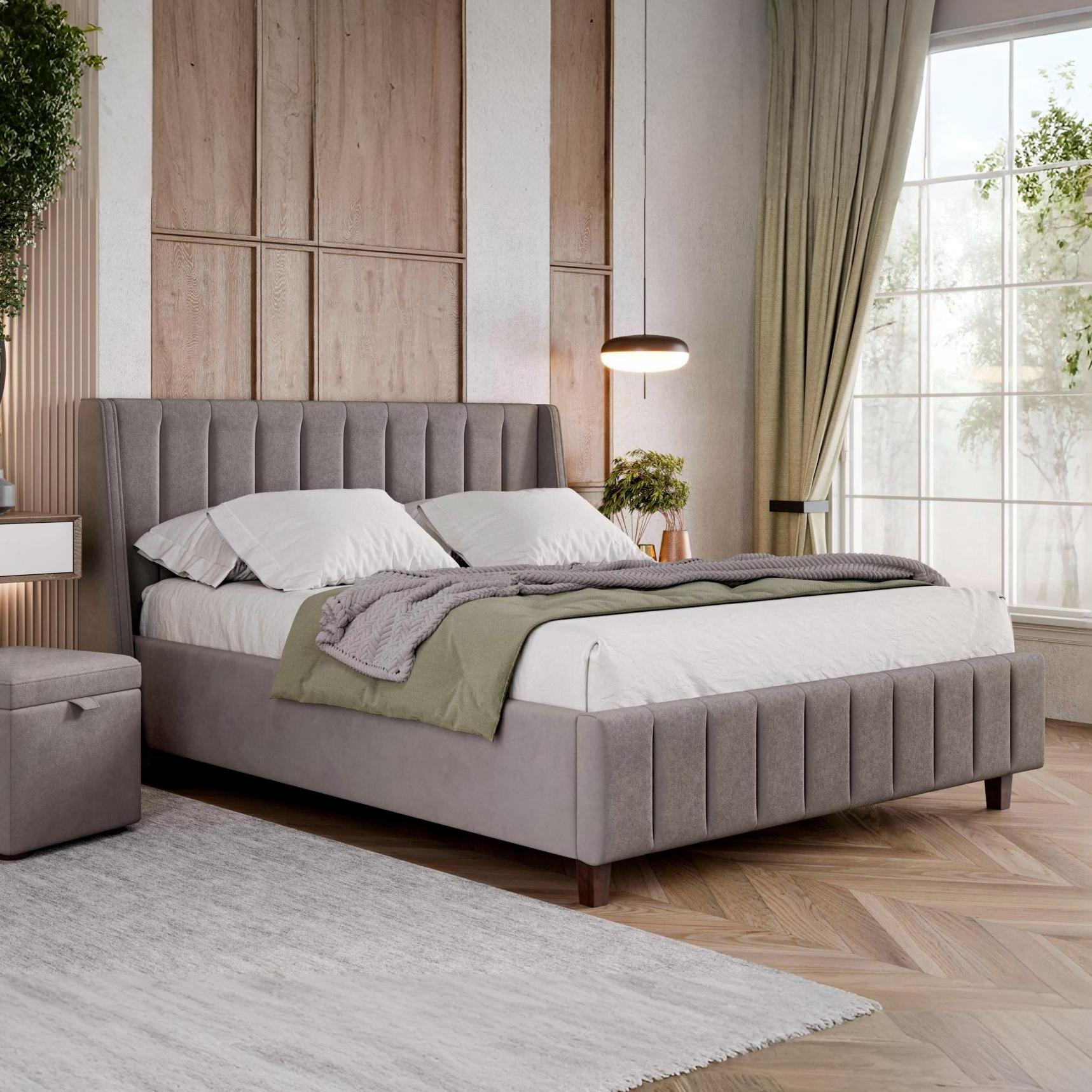 Кровать МИЛАНА 1600 // севен 112, велюр светло-серый