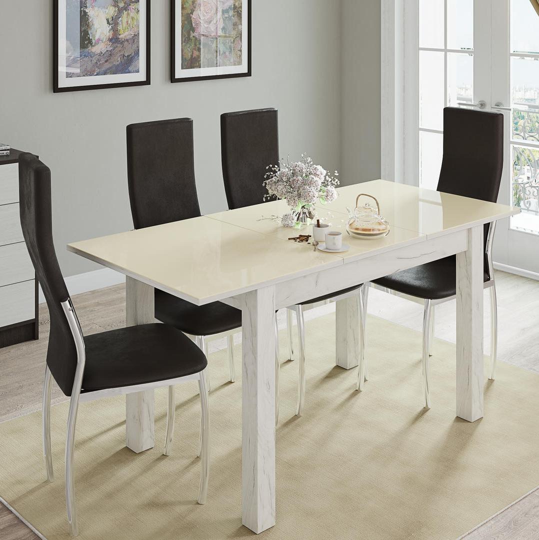 Стол обеденный БРУНО раскладной 1100х700 // дуб крафт белый, дуб крафт белый, лакобель ваниль