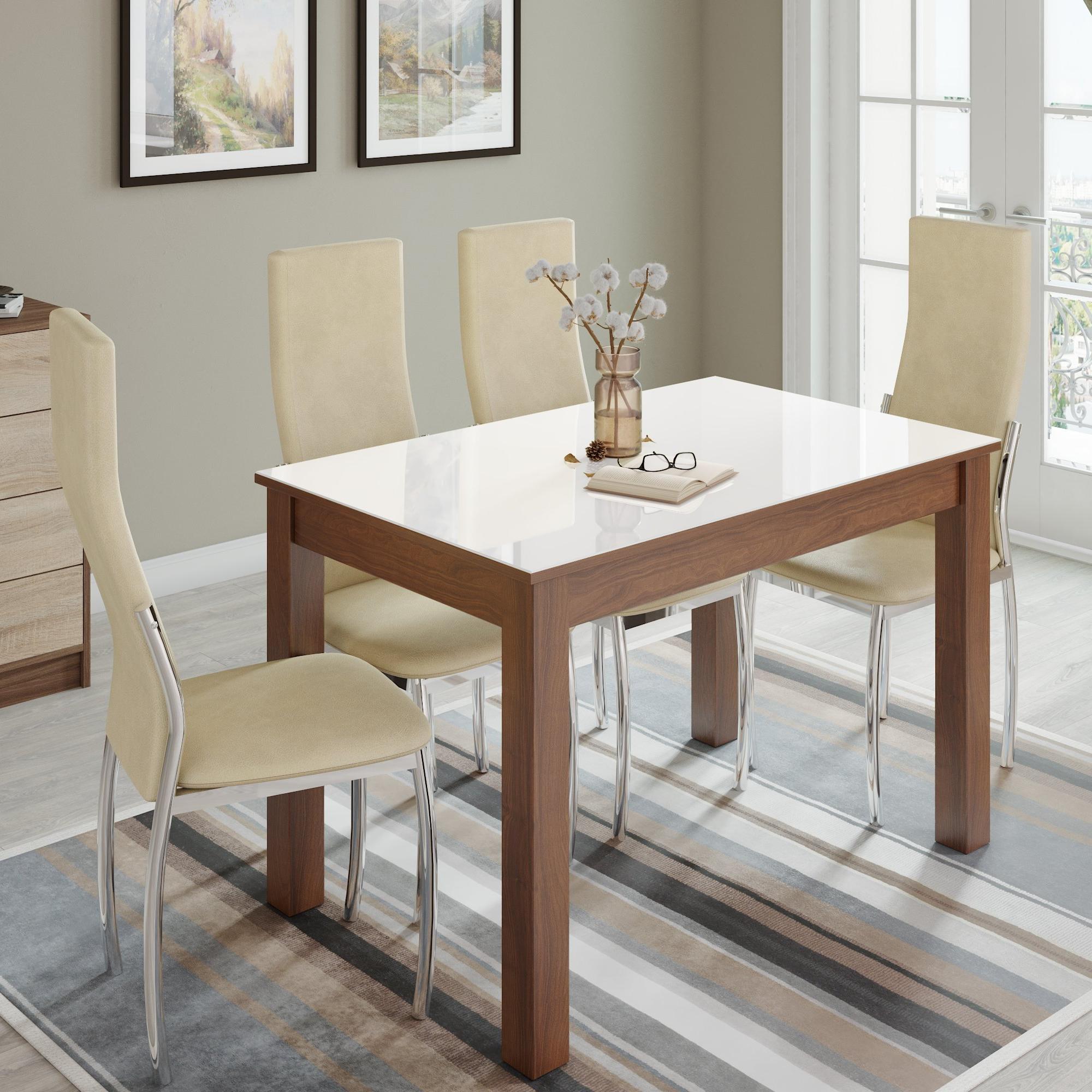 Стол обеденный НОРМАН нераскладной 1100х700 // орех шоколадный, орех шоколадный, лакобель белый